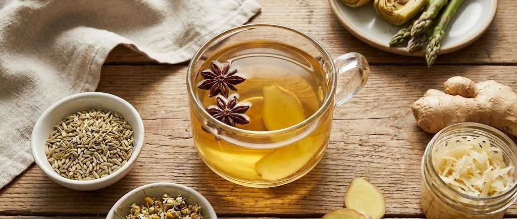 Consejo: Unas rodajas de jengibre fresco en agua caliente antes de comer pueden preparar tu estómago para la digestión.